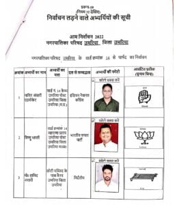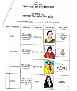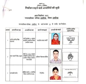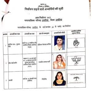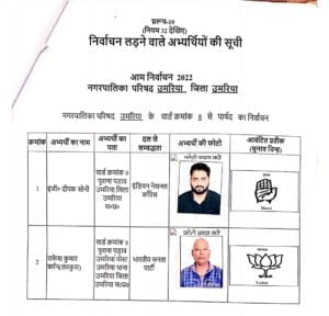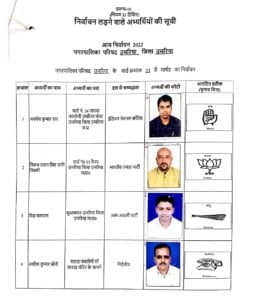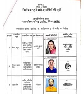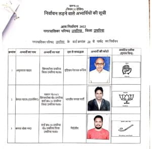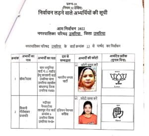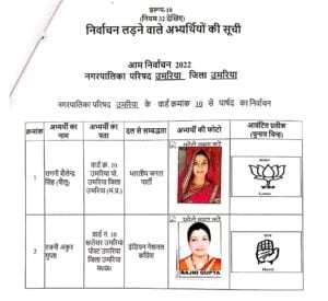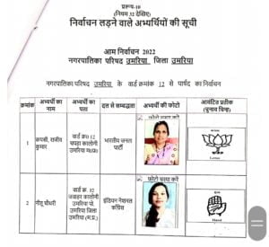 उमरिया (संवाद)। कलेक्टर एवं रिटर्निग आफीसर नगर पालिका उमरिया संजीव श्रीवास्तव द्वारा नगर पालिका उमरिया के विभिन्न 24 वार्डो के पार्षद पद के अभ्यर्थियों को चुनाव प्रतीक चिन्ह का आवंटन किया गया। इसके साथ ही अभ्यर्थियों एवं उनके प्रस्तावकों के नमूना हस्ताक्षर लिए गए। रिटर्निग आफीसर द्वारा अभ्यर्थियों को राज्य निर्वाचन आयोग द्वारा जारी आदर्श आचरण संहिता के संबंध में विस्तार से जानकारी दी गई तथा आयोग द्वारा जारी पुस्किताओं का वितरण भी किया गया। इस अवसर पर अपर कलेक्टर एवं उप जिला निर्वाचन अधिकारी अशोक ओहरी, सहायक रिटर्निग आफीसर दिव्या गुप्ता एवं उनके सहायक उपस्थित रहे।