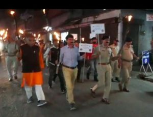 उमरिया (संवाद)। नशा मुक्ति अभियान के तहत पुलिस ने शुक्रवार की रात मुख्यालय स्थित मुख्य मार्गों में मशाल जुलूस निकाला। इस मौके पर अतिरिक्त पुलिस महानिदेशक डी सी सागर सहित कलेक्टर संजीव श्रीवास्तव ,एसपी प्रमोद कुमार सिन्हा सहित पुलिस अधिकारी एवम कर्मचारी शामिल रहे।