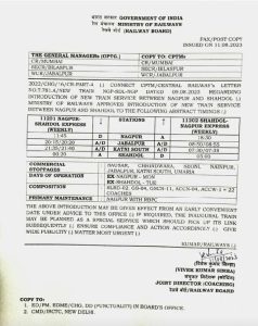नागपुर से शहडोल के लिए साप्ताहिक ट्रेन की मिली सौगात,शहडोल से उमरिया, कटनी जबलपुर रूट पर चलेगी ट्रेन,रेल्वे ने जारी किया टाइम टेबल