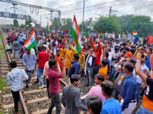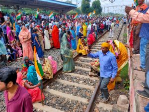 बड़ी खबर: आंदोलनकारियों ने किया रेल ट्रैक जाम स्टेशन के भीतर घुसकर रेल पटरियों में बैठ गए हैं आंदोलनकरी, भारी तनाव की स्थिति