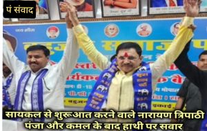 सपा कांग्रेस भाजपा के बाद विंध्य जनता पार्टी के राष्ट्रीय अध्यक्ष नारायण त्रिपाठी हाथी पर हुए सवार