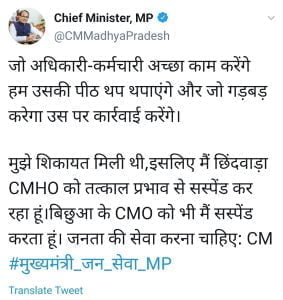 सीएम शिवराज ने दो अधिकारियों को मंच से किया सस्पेंड, कहा अच्छे काम करने वाले अधिकारियों को देंगे शाबासी,लापरवाहों पर होगी कार्यवाही