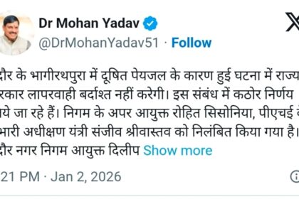 MP (संवाद)। इंदौर के भागीरथपुरा में दूषित पानी से हुई मौत मामले…