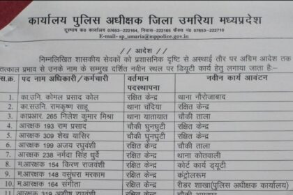 उमरिया (संवाद)। जिला पुलिस अधीक्षक विजय भागवानी ने प्रशासनिक स्तर पर अस्थायी…