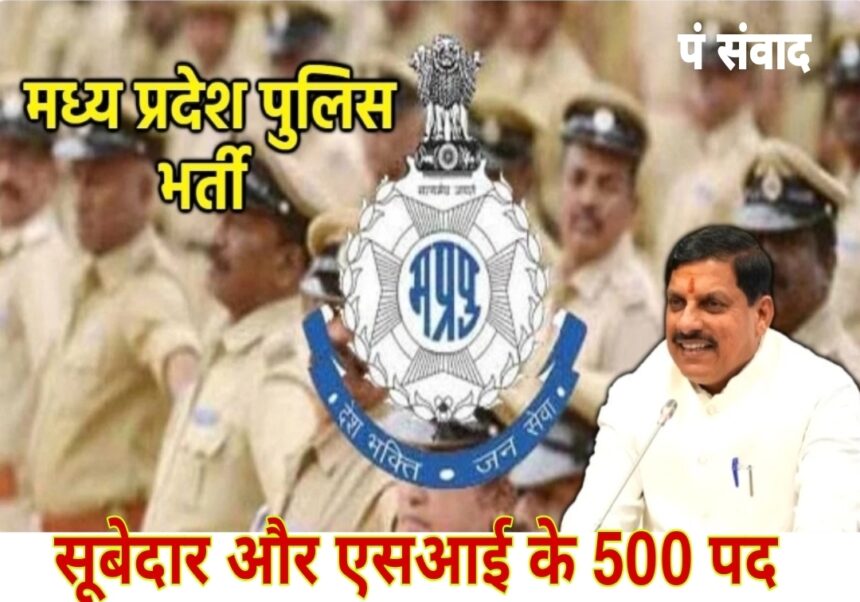 MP (संवाद)। मध्य प्रदेश में बेरोजगार युवाओं के लिए बड़ी अच्छी खबर सामने आई है जिसमें मध्य प्रदेश सरकार के द्वारा मध्य प्रदेश पुलिस के तहत सब इंस्पेक्टर और सूबेदार के पदों पर बंपर भर्ती निकाली गई है। जिसमें 500 पदों पर भर्ती की जानी है। यह प्रक्रिया 27 अक्टूबर से प्रारंभ हो रही है।