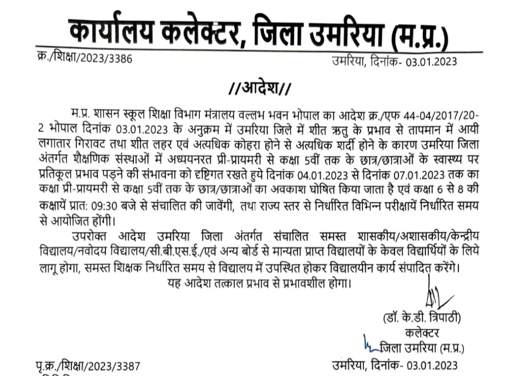 उमरिया (संवाद)। कलेक्टर डा. कृष्ण देव त्रिपाठी ने बताया कि उमरिया जिले…