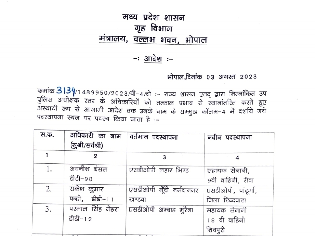 एमपी (संवाद)। मध्यप्रदेश में एक बार फिर पुलिस महकमे में ठोक बंद…