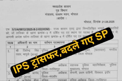 MP (संवाद)। मध्य प्रदेश में भारतीय पुलिस सेवा (IPS) अफसरों के स्थानांतरण…