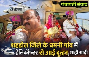 जिले के इतिहास में पहली बार हेलीकॉप्टर से शहडोल पहुंची दुल्हन,देखने ग्रामीणों की उमड़ी भीड़