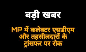 MP (संवाद)। बड़ी खबर मध्य प्रदेश से सामने आई है जहां 7 फरवरी 2026 तक के लिए स्थानांतरण पर रोक लगाई गई है। इसके लिए चुनाव आयोग ने मध्य प्रदेश के मुख्य सचिव को निर्देश जारी किया है। प्रदेश में SIR यानी विशेष गहन पुनरीक्षण कार्य के चलते तबादलों पर रोक लगाई गई है। बताया … Continue reading MP:अब फरवरी 2026 तक नहीं होंगे ट्रांसफर, कलेक्टर,एसडीएम और तहसीलदार के तबादलों पर रोक, यहां जानिए इसकी वजह